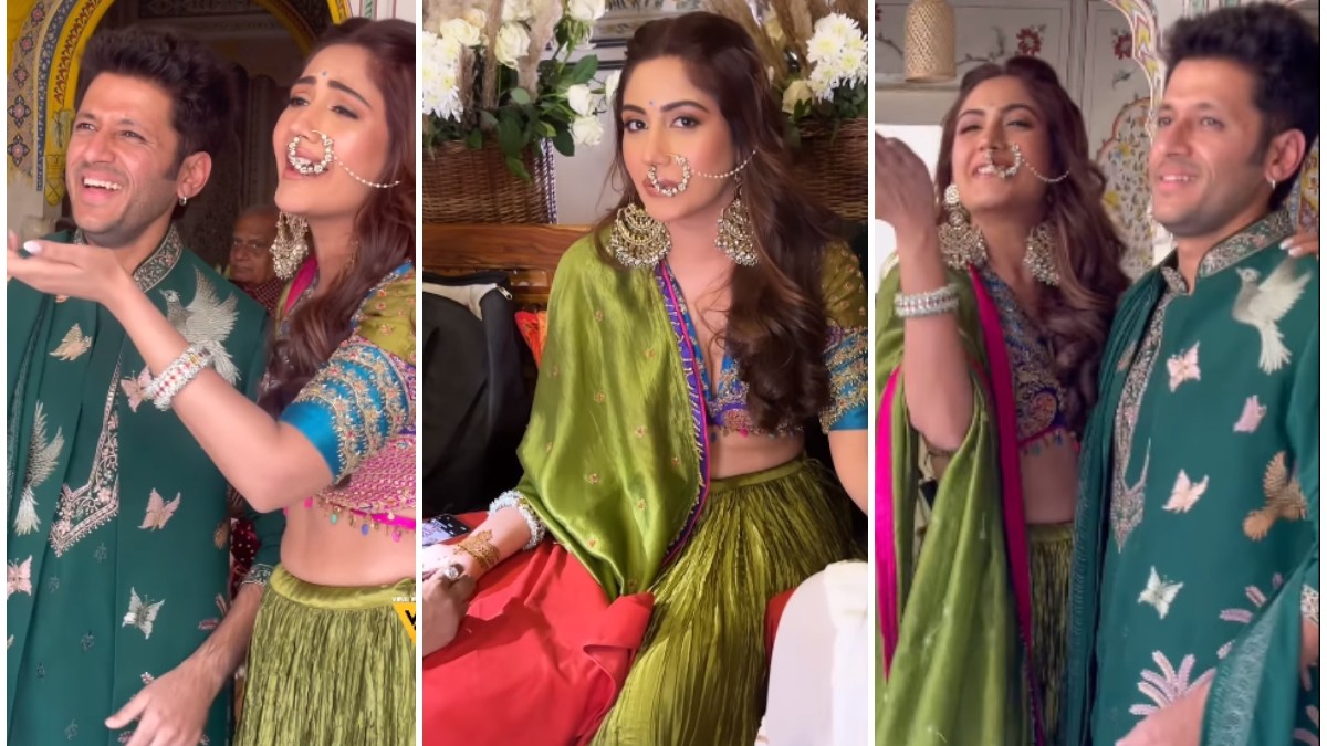 इसके साथ ही आप कपल की मेहंदी सेरमनी का वायरल वीडियो में आप देख सकते है कि सुरभि और करण की रॉयल एंट्री की पहली झलक दिखाई गई है। जिसमें ये कपल एक शाही अंदाज में नजर आ रहे हैं। वहीं कपल की लुक की बात करें, तो एक्ट्रेस ने मल्टीकलर चोली के साथ ग्रीन कलर का लहंगा पहना हुआ है जिसके साथ उन्होंने पिंक और ग्रीन दुपट्टे से आपने लुक को कंप्लीट किया हैं। वहीं दूल्हेराजा करण ने भी सी-ग्रीन कुर्ता-पायजामा में अपनी लेडी लव को ट्विन किया है। इस दौरान दोनों किसी रॉयल कपल से कम नहीं लग रहै हैं।