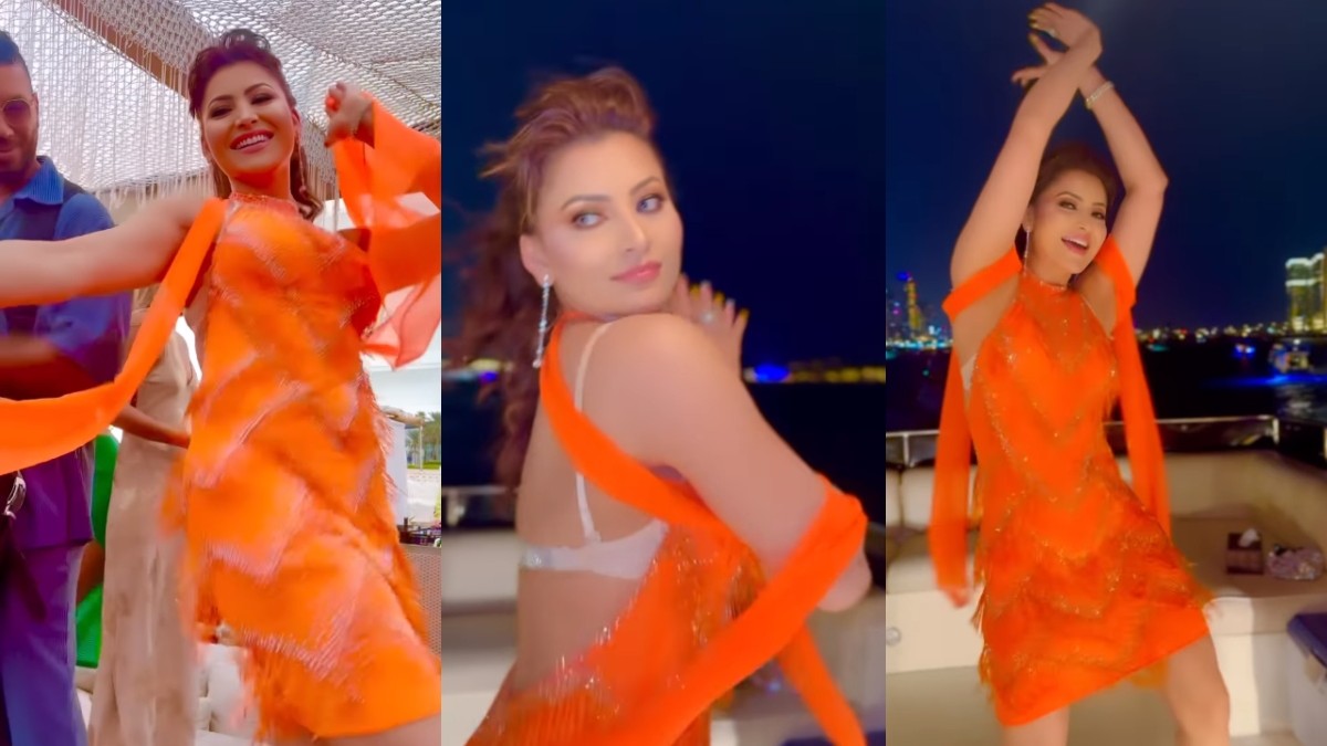 इन वीडियोज़ में उर्वशी रौतेला ऑरेंज कलर के हॉल्ट नेक बैकलेस ड्रेस पहनी दिख रही हैं। उर्वशी ने बैकलेस ड्रेस को सिल्वर शिमर ब्रा के साथ पेयर कर अपना लुक कंप्लीट किया, जिसमें वह काफी बोल्ड और खूबसूरत दिख रही थीं। वीडियो में ऑरेंज ड्रेस में एक्ट्रेस ने अरेबिक गाने पर खूब डांस किया।