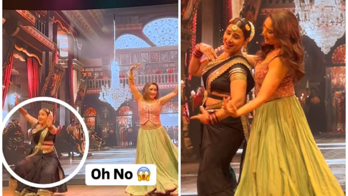 हालांकि उन्होंने खुद को ग्रेसफुली संभाला और तुरंत स्टेरप्स करते हुए माधुरी के साथ ताल से ताल मिलाई। इसका एक वीडियो ऑनलाइन सामने आया है। वीडियो में माधुरी ग्रीन-पिंक रंग के लहंगे में हैं और विद्या ट्रेडिशनल ब्लैक रंग की साड़ी में नजर आ रही हैं। दोनों का खूबसूरत डांस देख ऑडियंस भी उन्हें चीयर कर रही है।