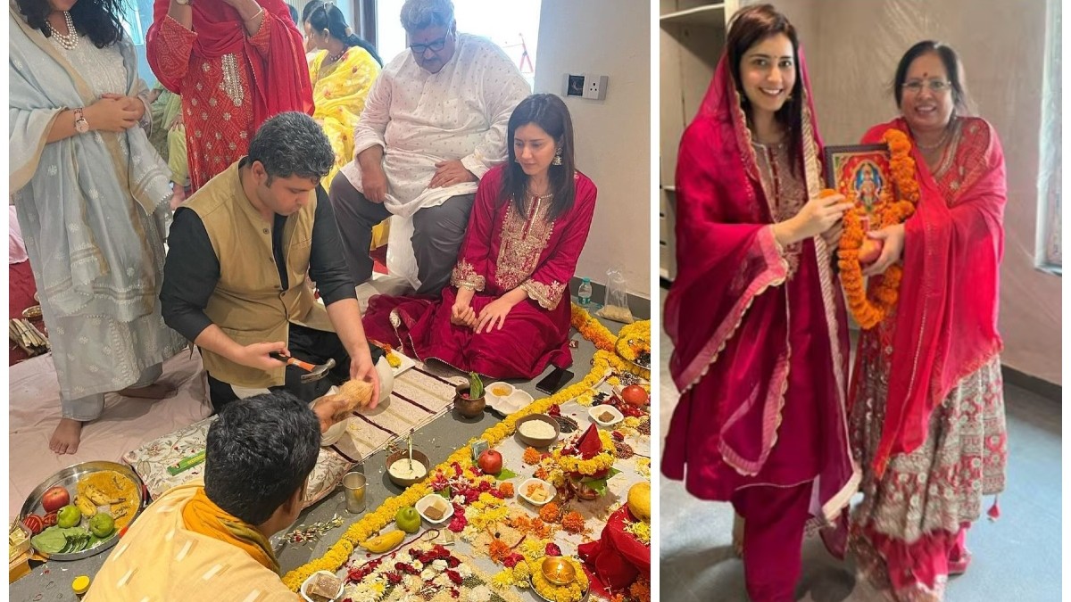 उनका नया घर फूल मालाओं से सजा हुआ दिख रहा है। उनके रिश्तेदार और परिवारवाले विधि-विधान से पूजा करवाते देखे जा सकते हैं। ये तस्वीरें इंटरनेट पर काफी वायरल हो रही हैं।