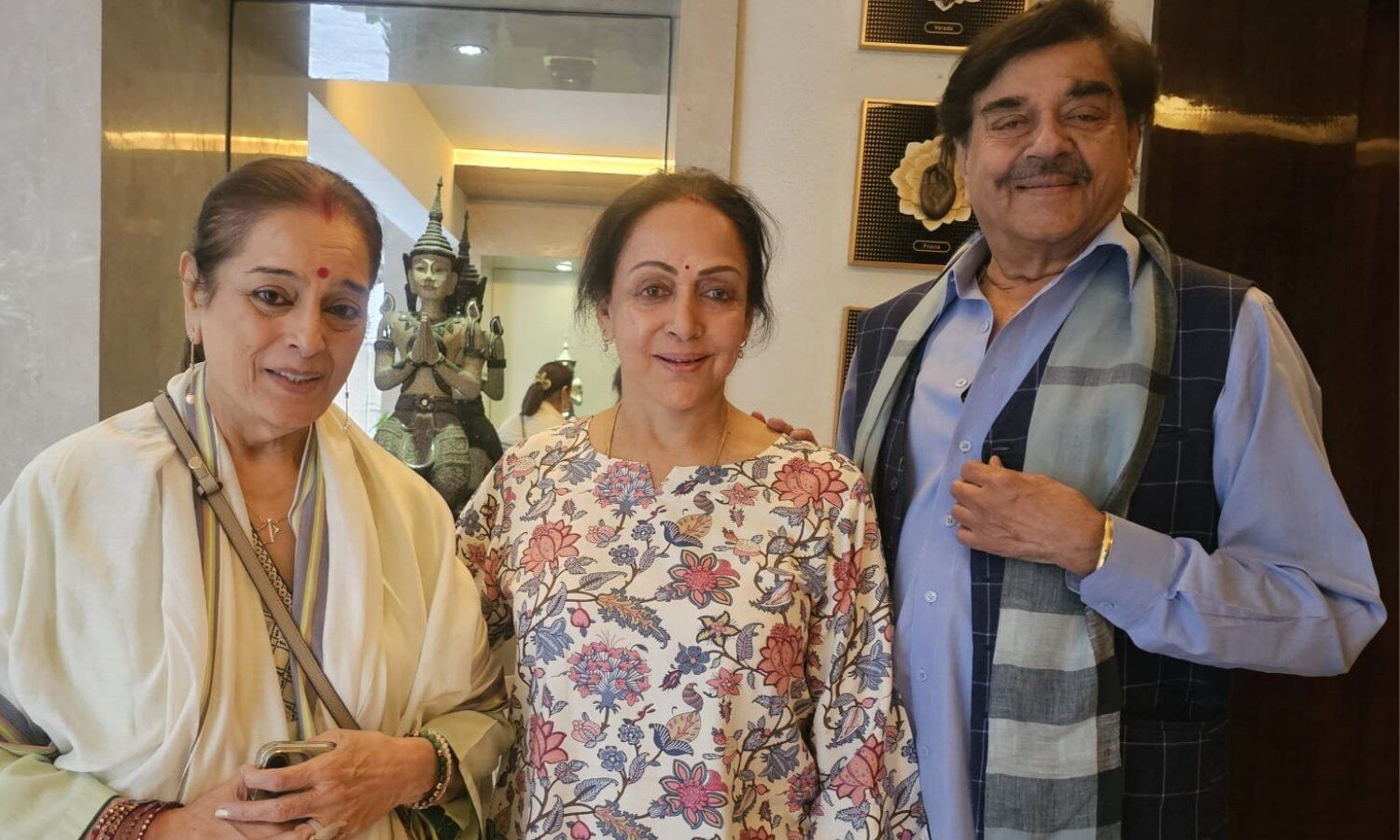 शत्रुघ्न सिन्हा ने अपनी पत्नी पूनम सिन्हा के साथ हेमा मालिनी से की मुलाकात। ( Photo- X account)