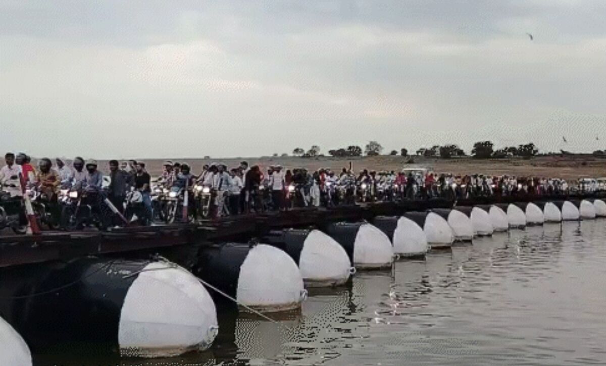 आगरा से चौंकाने वाला मामला सामने आया। तेज आंधी से चंबल नदी पर बने पीपे पुल दो हिस्सों में बंट गया।