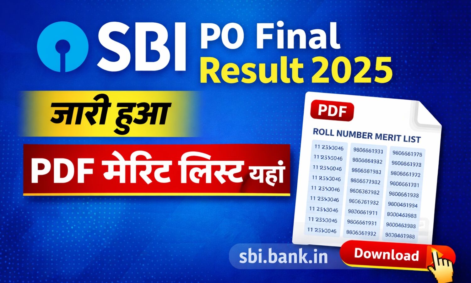 SBI PO Final Result 2025 को घोषित कर दिया गया है। स्टेट बैंक ऑफ इंडिया (SBI) ने प्रोबेशनरी ऑफिसर भर्ती परीक्षा 2025 का फाइनल रिजल्ट अपनी आधिकारिक वेबसाइट sbi.bank.in पर जारी किया है। परीक्षा में शामिल उम्मीदवार बिना लॉगिन क्रेडेंशियल के PDF फॉर्मेट में मेरिट लिस्ट डाउनलोड कर सकते हैं।