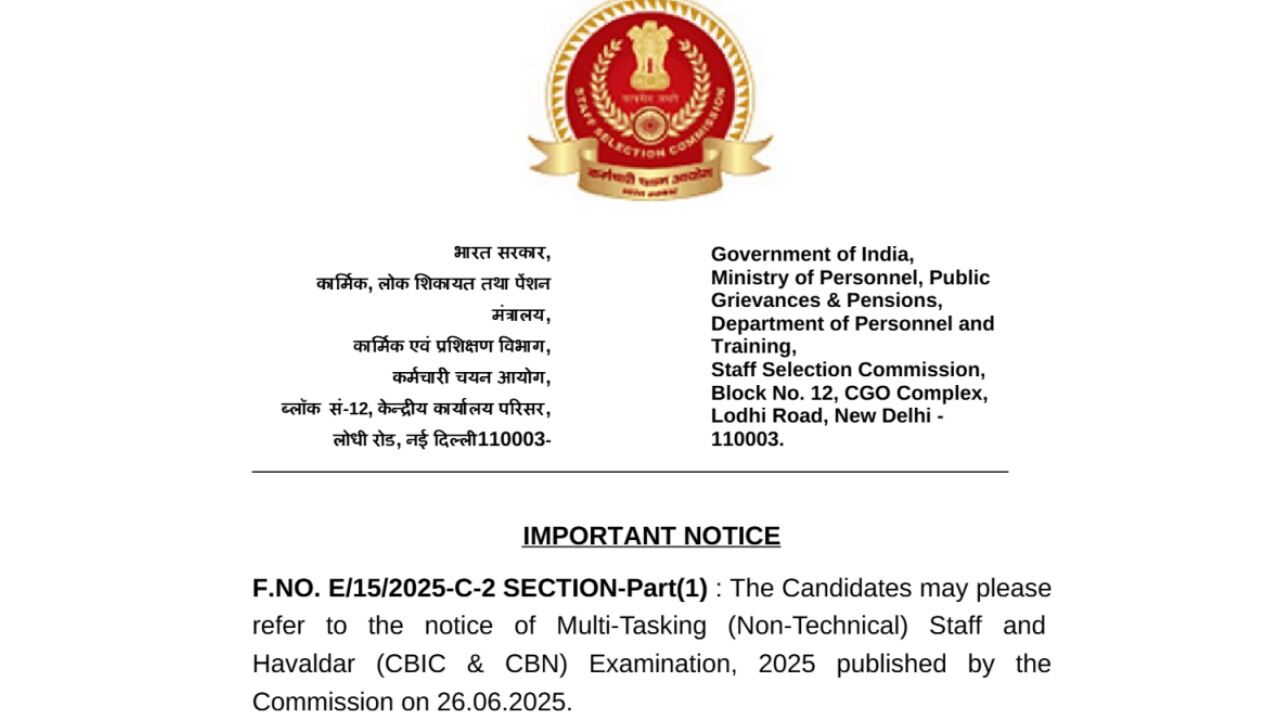 SSC ने साफ किया है कि अधिसूचना की बाकी सभी शर्तें यथावत रहेंगी।