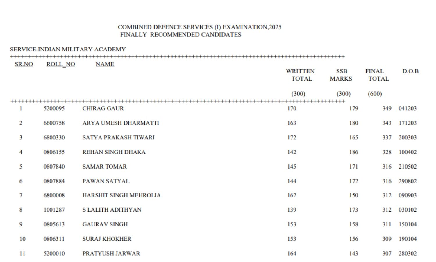 UPSC द्वारा जारी PDF में उम्मीदवारों का रोल नंबर, नाम, लिखित परीक्षा के अंक, SSB इंटरव्यू के अंक और कुल प्राप्तांक शामिल हैं।