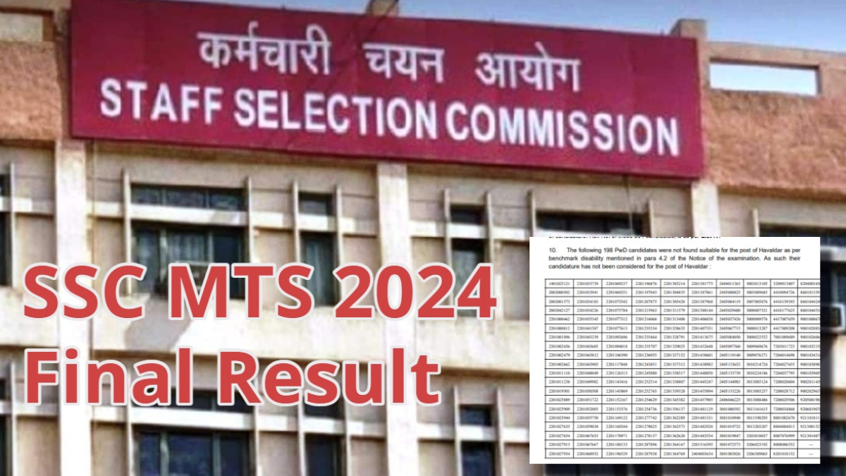 SSC MTS 2024 Final Result: कर्मचारी चयन आयोग (SSC) ने मल्टी टास्किंग (गैर-तकनीकी) स्टाफ और हवलदार (सीबीआईसी और सीबीएन) भर्ती-2024 के फाइनल रिजल्ट जारी कर दिए।