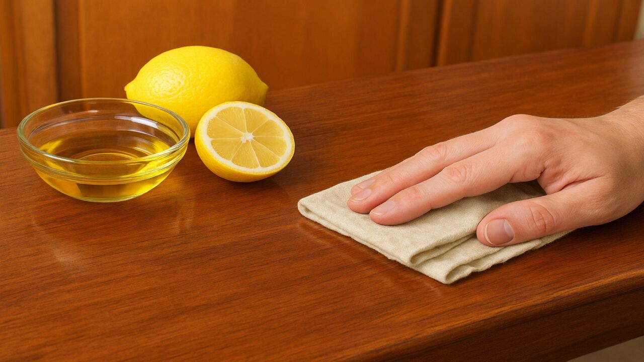 नींबू और ऑलिव ऑयल का मिश्रण: एक कटोरी में आधा कप ऑलिव ऑयल और आधा नींबू का रस मिलाएं। इस मिश्रण को एक नरम कपड़े में भिगोकर लकड़ी पर हल्के हाथों से रगड़ें। यह न केवल धूल और दाग हटाता है बल्कि लकड़ी को नेचुरल शाइन देता है। हफ्ते में एक बार ऐसा करने से फर्नीचर चमकदार बना रहता है।