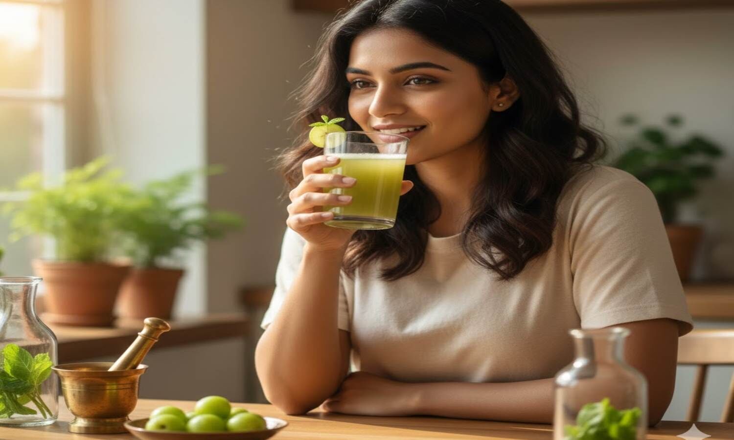 त्वचा और बालों को बनाए हेल्दी: आंवला जूस त्वचा को अंदर से पोषण देता है और नेचुरल ग्लो लाने में मदद करता है। यह फ्री रेडिकल्स से होने वाले नुकसान को कम करता है। नियमित सेवन से बाल मजबूत होते हैं और समय से पहले सफेद होने की समस्या भी कम हो सकती है।