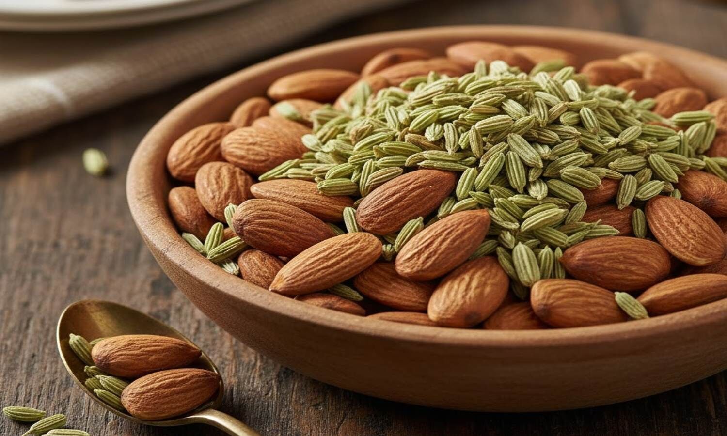 बादाम प्रोटीन, फाइबर और एंटीऑक्सीडेंट्स से भरपूर होता है, जबकि सौंफ में एंटी-इंफ्लेमेटरी और डाइजेस्टिव गुण पाए जाते हैं। दोनों का कॉम्बिनेशन शरीर को संतुलित पोषण देता है।