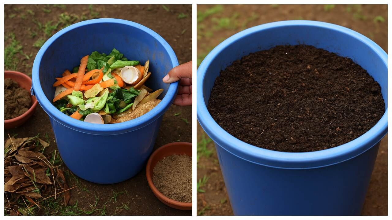 घर में खाद तैयार करने की विधि। (Image-AI)
