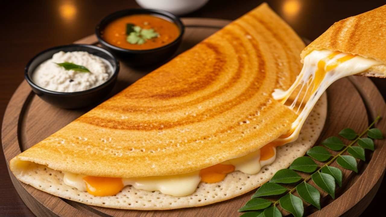 Cheese Dosa Recipe: चीज़ डोसा एक ऐसी डिश है जिसे देखकर किसी के भी मुंह में पानी आने लगता है। आप अगर साउथ इंडियन डिशेज़ के शौकीन हैं तो चीज़ डोसा जरूर पसंद करते होंगे। पारंपरिक डोसा जहां सांभर और नारियल चटनी के साथ परोसा जाता है, वहीं अगर इसमें चीज़ का स्वाद जोड़ दिया जाए तो यह बच्चों और बड़ों दोनों का फेवरेट स्नैक बन जाता है। कुरकुरी डोसा शीट पर पिघला हुआ चीज़ न सिर्फ टेस्ट को बढ़ा देता है बल्कि इसे और भी क्रिस्पी और क्रीमी बना देता है।