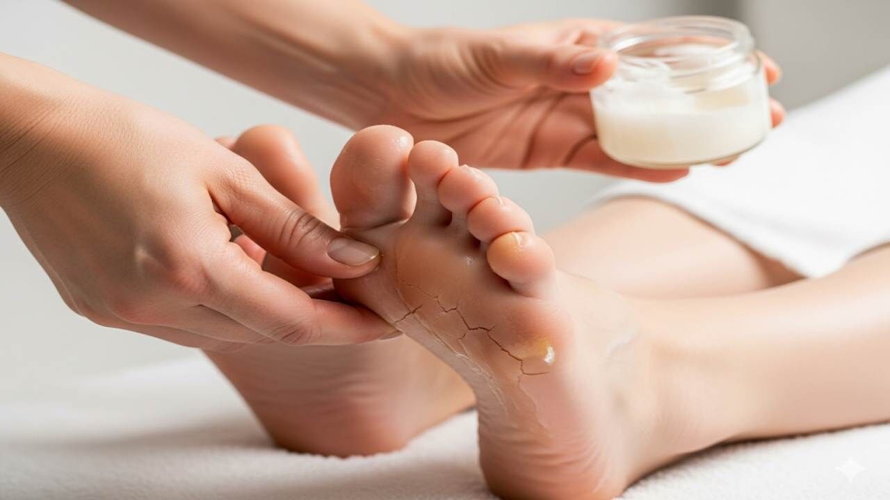 नारियल तेल: नारियल तेल एड़ियों की नमी बनाए रखने का सबसे आसान तरीका है। रात को सोने से पहले पैरों को धोकर अच्छी तरह सुखाएं और फटी हुई जगह पर नारियल तेल लगाकर मोज़े पहन लें। यह न सिर्फ एड़ी का सूखापन कम करेगा बल्कि त्वचा को मुलायम बनाएगा और धीरे-धीरे दरारें भरने में मदद करेगा।