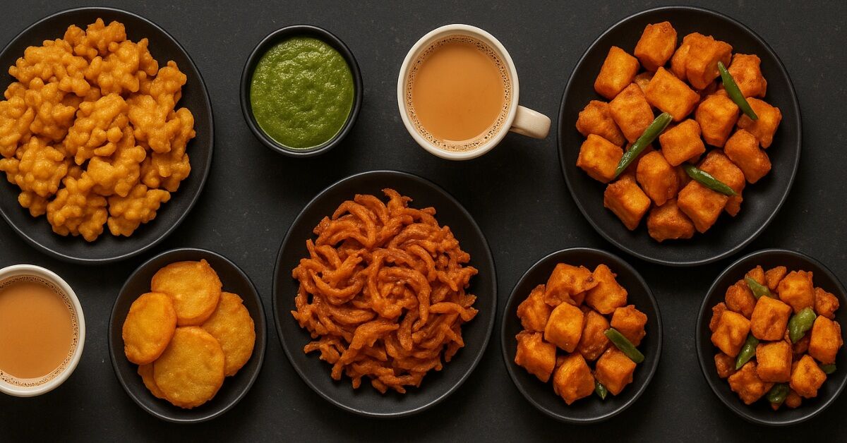 मानसून में खील, पपीता, तरबूज गिरी और पनीर मिर्च पकौड़ों की थाली