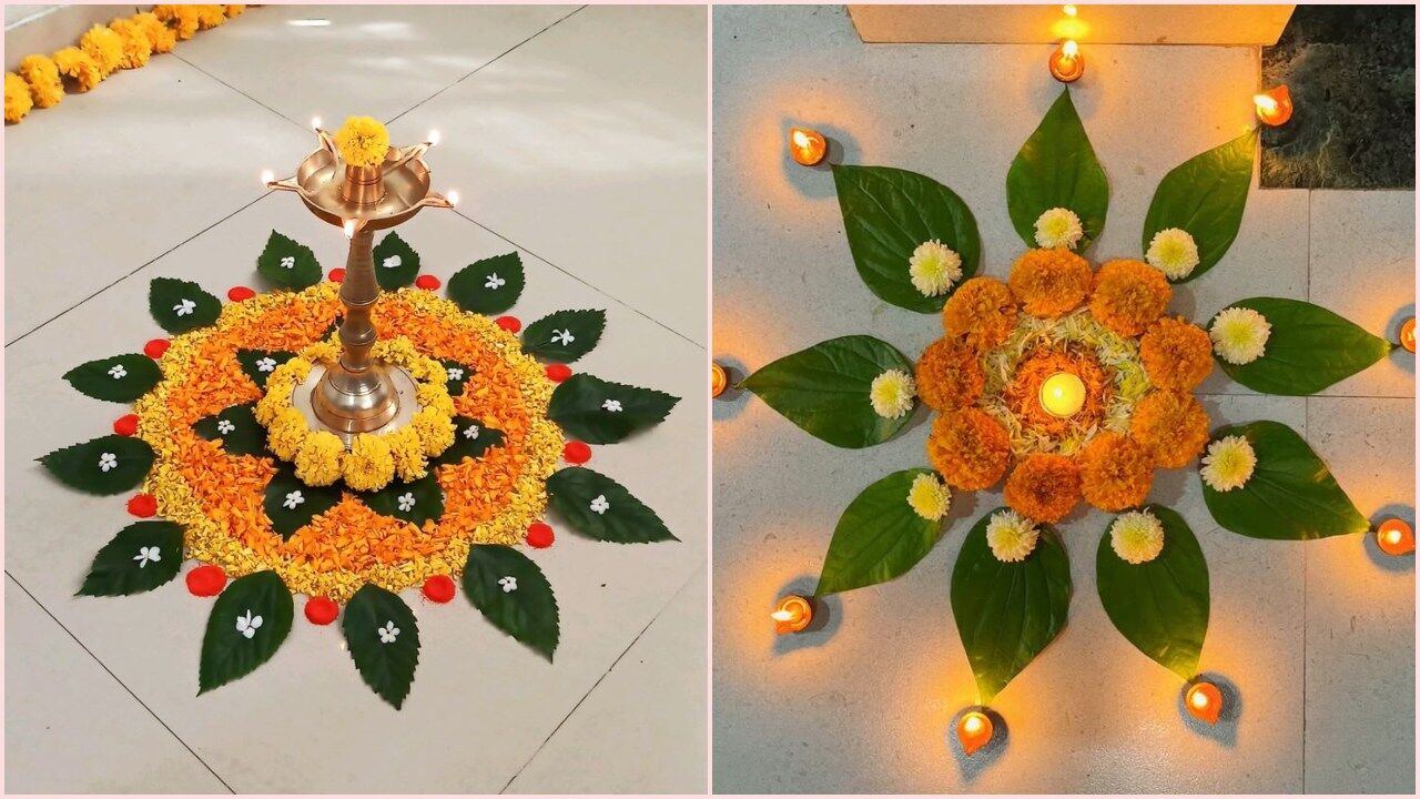 Rangoli Designs: आम के पत्ते और गेंदा फूल से सिर्फ 10 मिनट में बनाएं सुंदर रंगोली, धनतेरस पर बढ़ाएं घर की शोभा