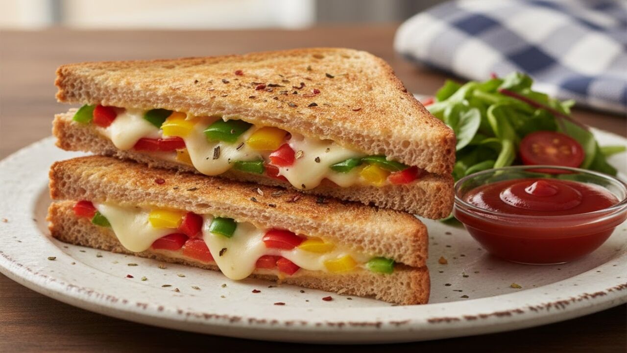Cheese Capsicum Sandwich: अगर आप बच्चों के टिफिन या शाम की स्नैक टाइम के लिए कुछ टेस्टी और हेल्दी बनाना चाहते हैं, तो चीज़ कैप्सिकम सैंडविच एक परफेक्ट ऑप्शन है। इसमें भरपूर मात्रा में चीज़ और क्रंची कैप्सिकम का स्वाद बच्चों को बेहद पसंद आता है। खास बात ये है कि इसे बनाने में ज्यादा मेहनत नहीं लगती और ये रेस्टोरेंट जैसी फील घर पर ही देता है।