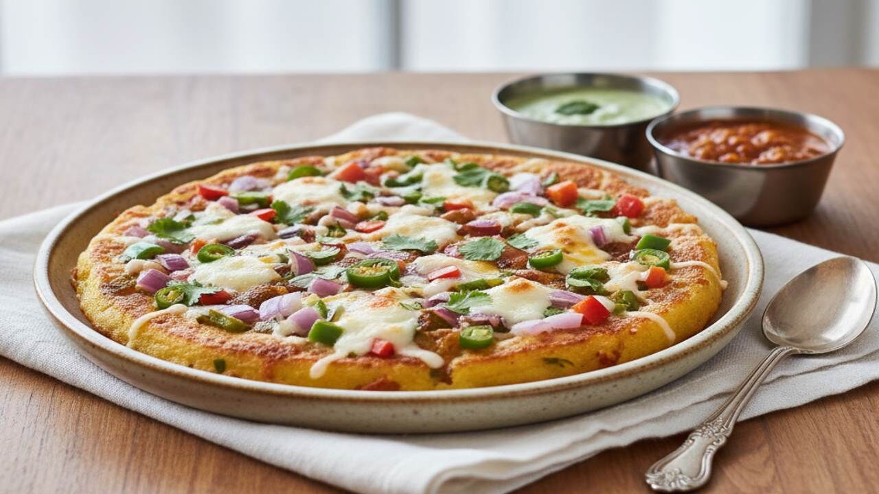 चीज़ उत्तपम हेल्दी और टेस्टी ब्रेकफास्ट ऑप्शन है। इसमें दाल-चावल से बना बैटर और सब्जियों का मेल पोषण देता है, वहीं ऊपर से डाली गई चीज़ इसे रेस्टोरेंट-स्टाइल बना देती है।