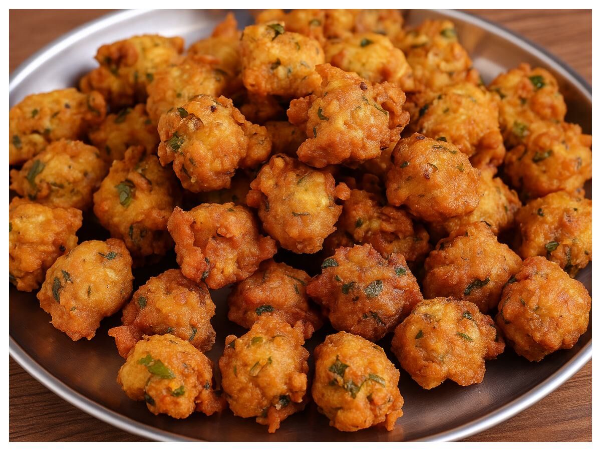 - पकौड़ों को मध्यम आंच पर सुनहरा और कुरकुरा होने तक तलें।