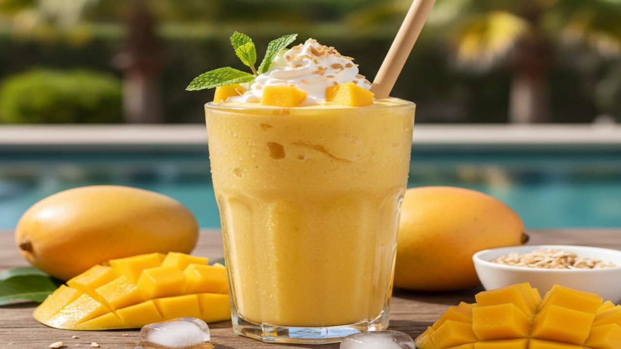 मैंगो स्मूदी नाश्ते, शाम की स्नैक टाइम या फिर किसी भी वक्त प्यास बुझाने और ताज़गी पाने के लिए बेस्ट ऑप्शन है। इसमें मिलते हैं विटामिन, मिनरल्स और फाइबर जो शरीर को एनर्जी देते हैं। जानते हैं मैंगो स्मूदी बनाने का तरीका।
