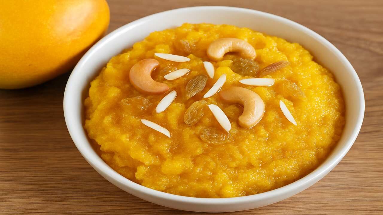 Mango Suji Halwa: सीजन में आम खाने का मजा ही कुछ और होता है, लेकिन जब बात हो मैंगो सूजी हलवे की, तो यह स्वाद और सेहत का डबल डोज बन जाता है। यह हलवा न सिर्फ बच्चों को पसंद आता है, बल्कि बड़ों के लिए भी एक टेस्टी ट्रीट साबित होता है। इसमें आम का प्राकृतिक मीठापन, सूजी की नरमी और देसी घी का तड़का मिलकर इसे खास बना देता है। इसे बनाना भी बेहद आसान है और खास मौकों या वीकेंड ब्रंच में झटपट तैयार किया जा सकता है।