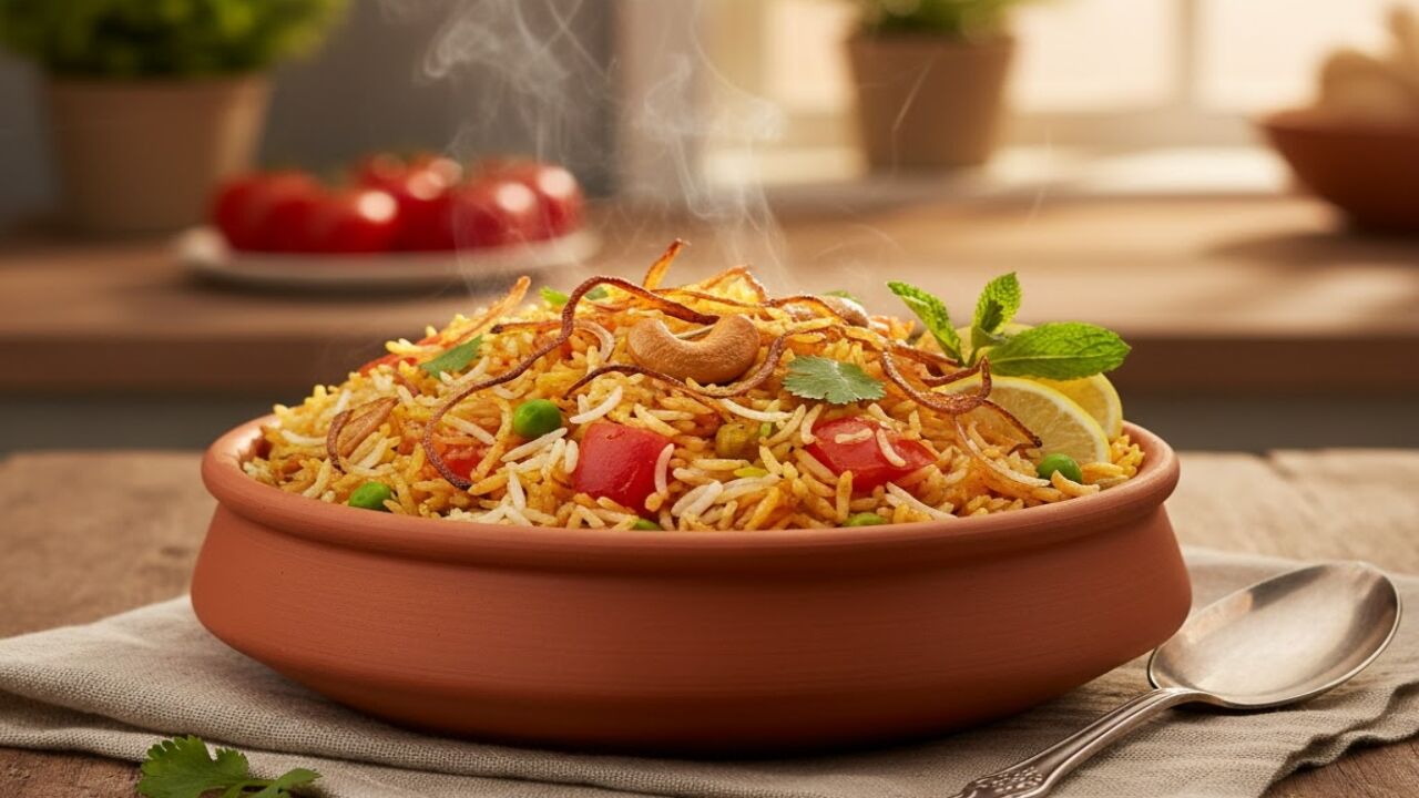 Tomato Biryani Recipe: अगर आप बिरयानी लवर हैं और कुछ नया ट्राय करना चाहते हैं, तो टोमेटो बिरयानी आपके लिए परफेक्ट ऑप्शन है। इसमें टमाटर की खटास, मसालों की खुशबू और चावल की नरमी का ऐसा शानदार कॉम्बिनेशन मिलता है कि हर बाइट में स्वाद का धमाका महसूस होता है। यह साउथ इंडियन स्टाइल बिरयानी हल्की, फ्लेवरफुल और झटपट बनने वाली डिश है, जिसे आप लंच या डिनर दोनों में परोस सकते हैं।