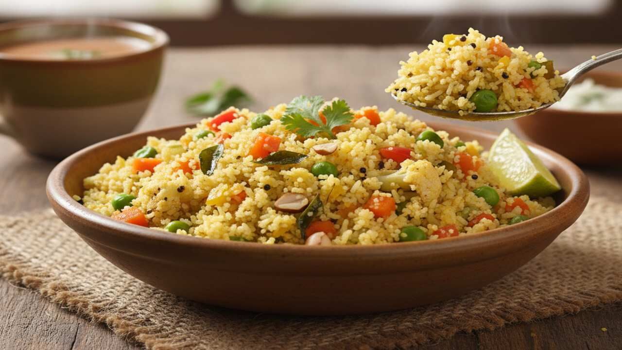 वेजिटेबल उपमा एक झटपट बनने वाली रेसिपी है, जिसे आप नाश्ते या हल्के खाने में परोस सकते हैं। इसमें गाजर, मटर, बीन्स जैसी रंग-बिरंगी सब्जियां डालकर इसे और भी हेल्दी बनाया जा सकता है। खास बात यह है कि उपमा कम तेल में बन जाता है और इसे हरी चटनी या नारियल चटनी के साथ खाने पर स्वाद दोगुना हो जाता है।