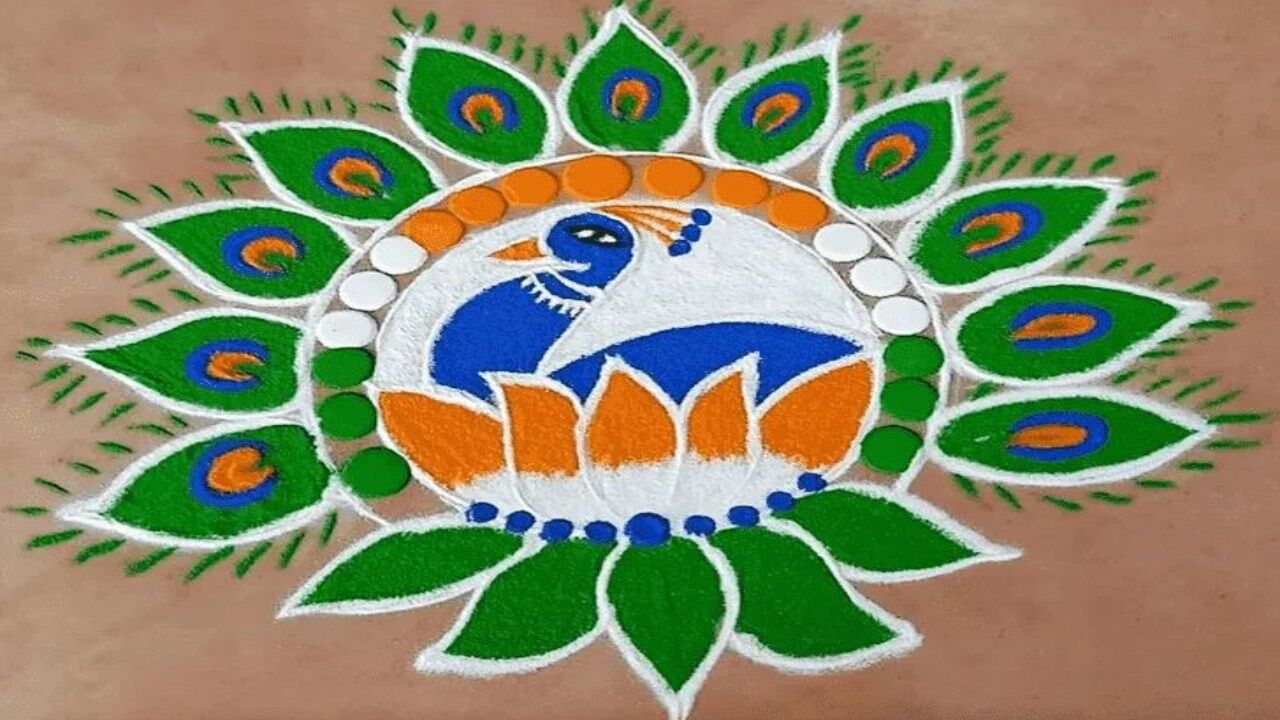 6. मोर और तिरंगा रंगोली