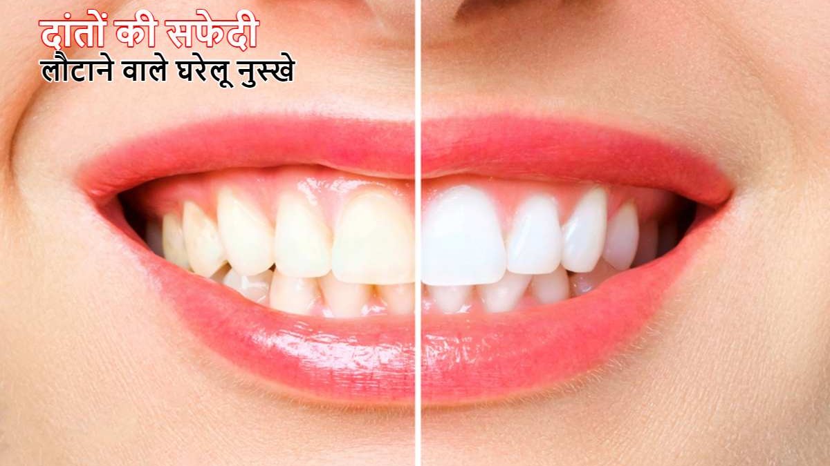 दांतों का पीलापन दूर करने में कुछ घरेलू उपाय भी मददगार हो सकते हैं। इन तरीकों को कुछ दिनों तक आजमाने से ही दांतों पर जमी पीली परत दूर हो जाती है और दांत सफेद मोती जैसे चमकने लगते हैं।