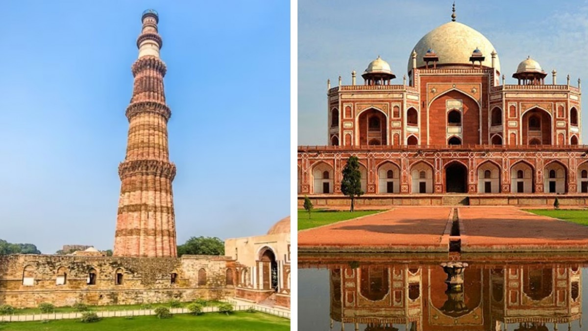कुतुब मीनार: कुतुब मीनार दुनिया की सबसे ऊंची ईंट की मीनार है और यह 12वीं शताब्दी में बनाई गई थी। यह लाल बलुआ पत्थर और संगमरमर से बना है और इसमें जटिल नक्काशी है। कुतुब मीनार एक यूनेस्को विश्व धरोहर स्थल है और दिल्ली के सबसे प्रतिष्ठित स्थलों में से एक है।