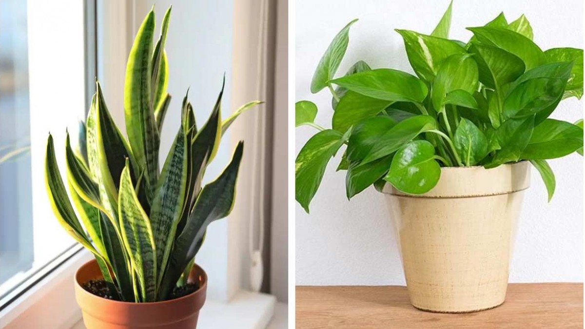 स्नेक प्लांट: स्नेक प्लांट एक हार्डी पौधा है जो कम रोशनी और पानी में भी जीवित रह सकता है। यह हवा को शुद्ध करने में भी मदद करता है और विषाक्त पदार्थों को दूर करता है।
