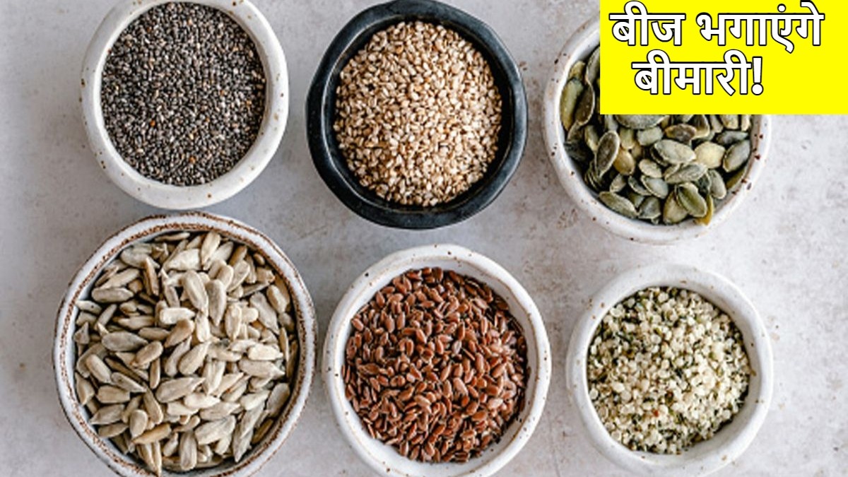 Health Tips: बढ़ती उम्र के साथ सेहत का खास ख्याल रखना जरूरी हो जाता है। सही लाइफस्टाइल और पोषण से भरा खान-पान हेल्दी रखने में मदद करता है। साल दर साल घटती उम्र के बीच आप अगर खुद को स्वस्थ्य बनाए रखना चाहते हैं तो अपनी डाइट में बीजों को भी शामिल करना शुरू कर दें। कुछ बीजों में पोषण का खजाना छिपा हुआ है, जिन्हें खाने से शरीर में नई ऊर्जा आ जाती है। ये कई गंभीर बीमारियों से भी शरीर का बचाव करता है।