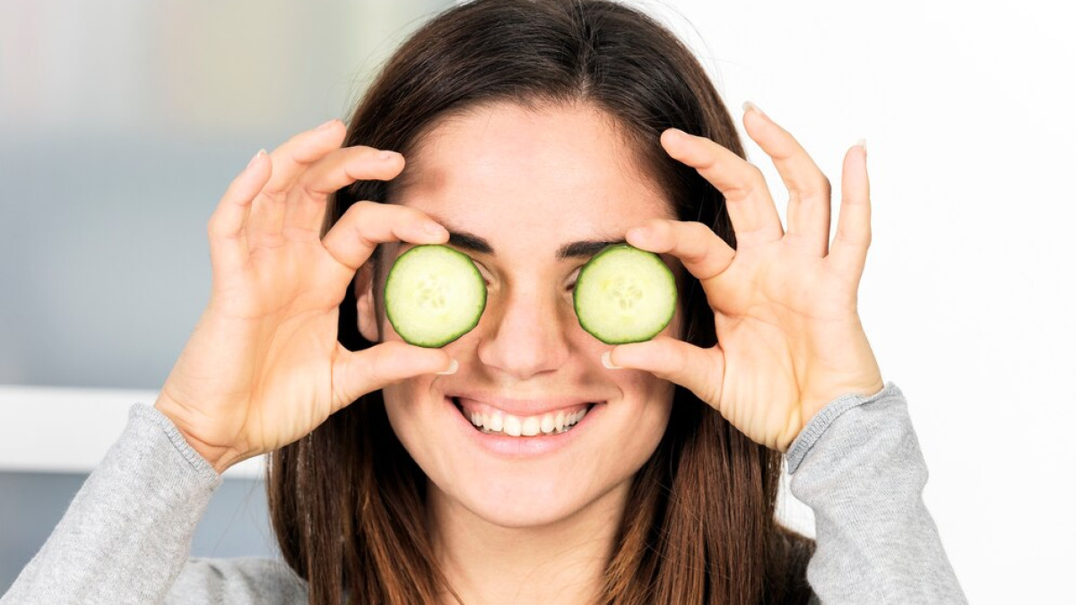 खीरे में 95% पानी होता है, जो त्वचा को हाइड्रेट करता है। साथ ही इसमें विटामिन C और एंटीऑक्सीडेंट्स होते हैं जो त्वचा को ठंडक पहुंचाते हैं और डार्क सर्कल्स को हल्का करने में मदद करते हैं। खीरे की ठंडक और उसकी नेचुरल गुणकारी शक्तियां आंखों की थकान को भी कम करती हैं और आपको फ्रेश कर देती है।