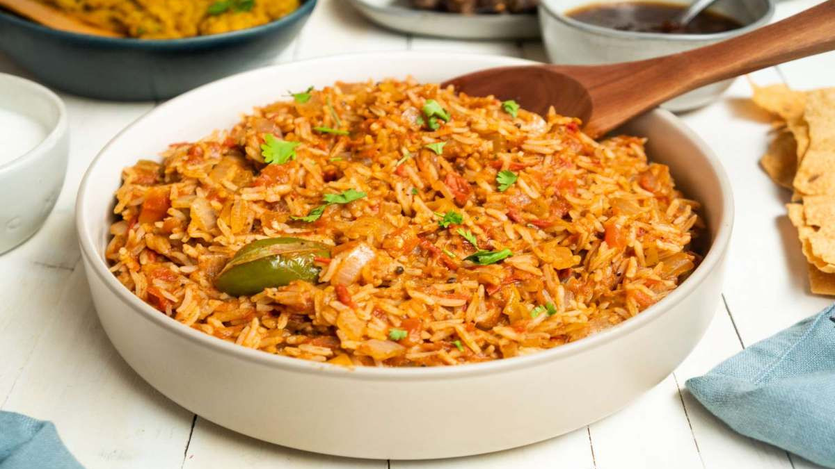 Tomato Rice Recipe: जब भी खाने में कुछ हल्का, मसालेदार और झटपट बनने वाला चाहिए, तो टमाटर राइस एक बेहतरीन विकल्प है। यह डिश खासकर दक्षिण भारत में बहुत पॉपुलर है, लेकिन इसकी लोकप्रियता अब पूरे देश में फैल चुकी है। इसकी सबसे बड़ी खूबी यह है कि इसे आप बचे हुए चावल से भी बना सकते हैं और यह एक कम्प्लीट मील बन जाता है बिना किसी सब्ज़ी या रोटी के।
