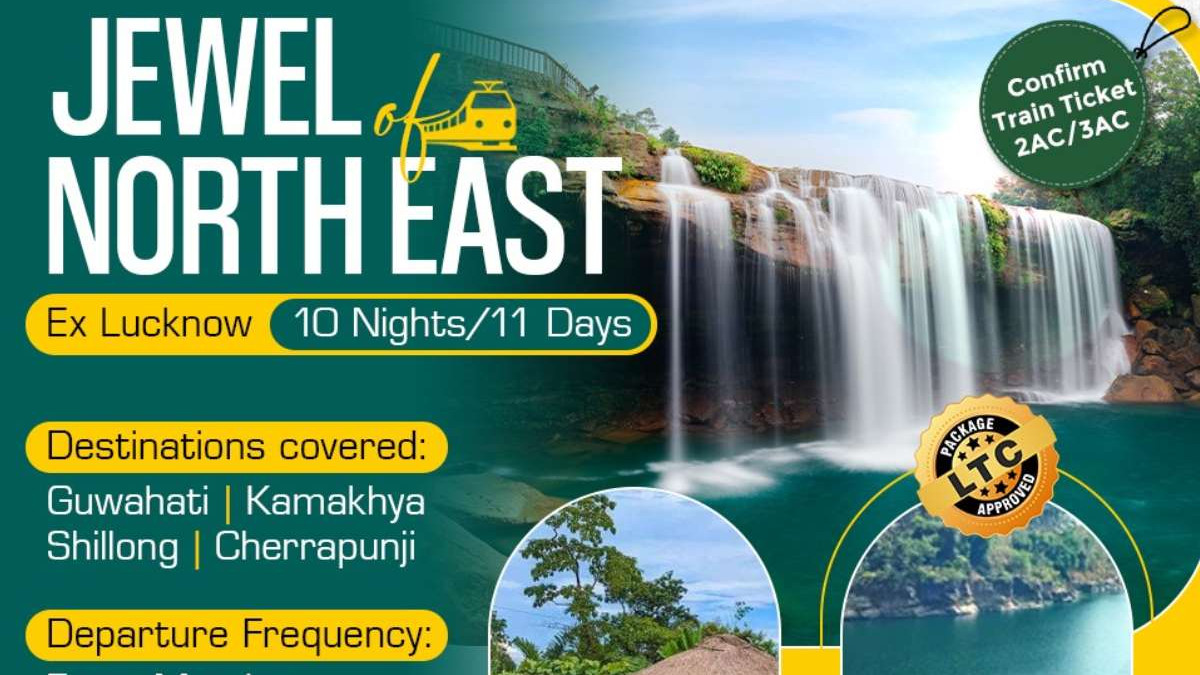 इस पैकेज का नाम "Jewel of North East" हैं, इसमें आप चेरापूंजी, गुवाहाटी, कामाख्या और शिलॉन्ग जैसे खूबसूरत स्थानों की सैर कर सकते हैं। इस पैकेज के तहत 10 रात और 11 दिन की यात्रा में आपको ट्रेन से ट्रैवल करना पड़ेगा। यह पैकेज आपको हर सोमवार को मिलेगा और इस टूर पैकेज की शुरुआत उत्तर प्रदेश की राजधानी लखनऊ से होगी।