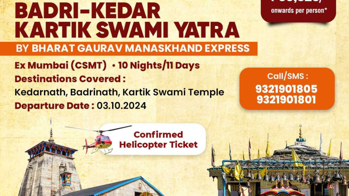 IRCTC ने इस खास पैकेज को "Badri Kedar Kartik Swami Yatra (WZUBG11)" नाम दिया है। यह टूर पैकेज 10 रात और 11 दिन का है। इस टूर पैकेज की शुरुआत मुंबई से होगी। इस टूर पैकेज में टूरिस्ट ऋषिकेश, रुद्रप्रयाग, केदारनाथ, जोशीमठ और बद्रीनाथ के दर्शन करेंगे। इस टूर पैकेज की शुरुआत 03 सितंबर में होगी।