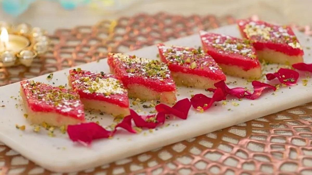 - अब इन्हें पिस्ता और गुलाब की पंखुड़ियों से गार्निश करें।