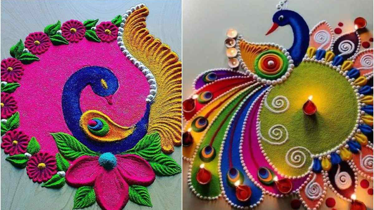 Peacock Rangoli Design: दिवाली पर बनाएं मोर रंगोली डिजाइन, बढ़ जाएगी घर की शोभा, देखें PHOTOS