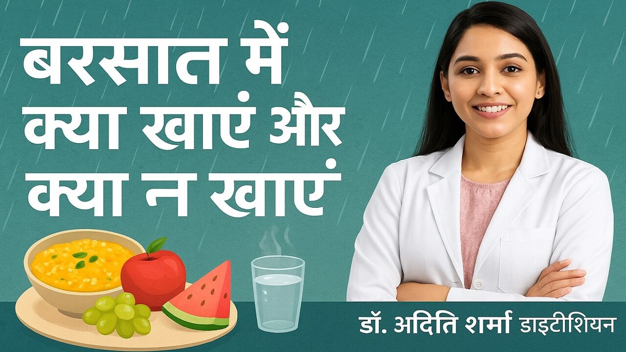 rainy season diet Guide: बरसात के मौसम में स्वस्थ रहने के लिए जानिए डॉ. अदिति शर्मा की खास डाइट टिप्स। ताजा भोजन, मौसमी फल-सब्जियां, दालें और सही नॉनवेज चुनें। जानें किन चीज़ों से बचें।