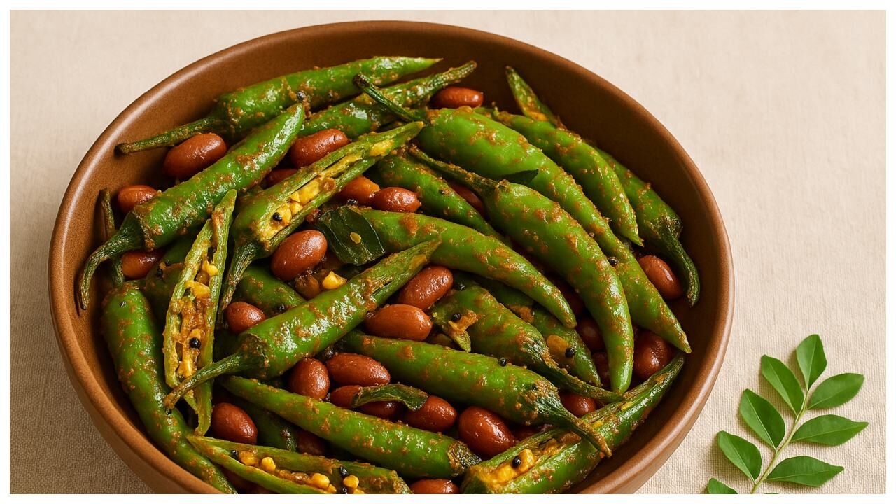 Stuffed mirchi fry: अगर तीखे और मसालेदार खाने के शौकीन हैं, तो साउथ इंडियन स्टाइल मिर्ची फ्राई जरूर ट्राई करें। इसमें भुनी हुई मूंगफली का ट्विस्ट इस डिश को और खास बना देता है। हरी मिर्च, करी पत्ता, राई और कुछ सादे मसालों से बनने वाली यह रेसिपी बेहद आसान है। इसे आप पराठे, दाल-चावल या खिचड़ी के साथ मजे से खा सकते हैं। कम समय में बनने वाला ये तीखा तड़का आपके खाने में चार चांद लगा देगा।