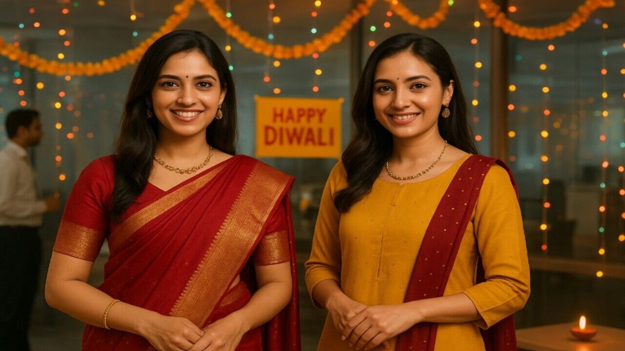 ऑफिस की दिवाली पार्टी में साड़ी और सूट दोनों ही उपयुक्त हैं। बस जरूरत है सही चयन की, ऐसा जो आपकी शैली, सुविधा और उत्सव के माहौल तीनों से मेल खाए।