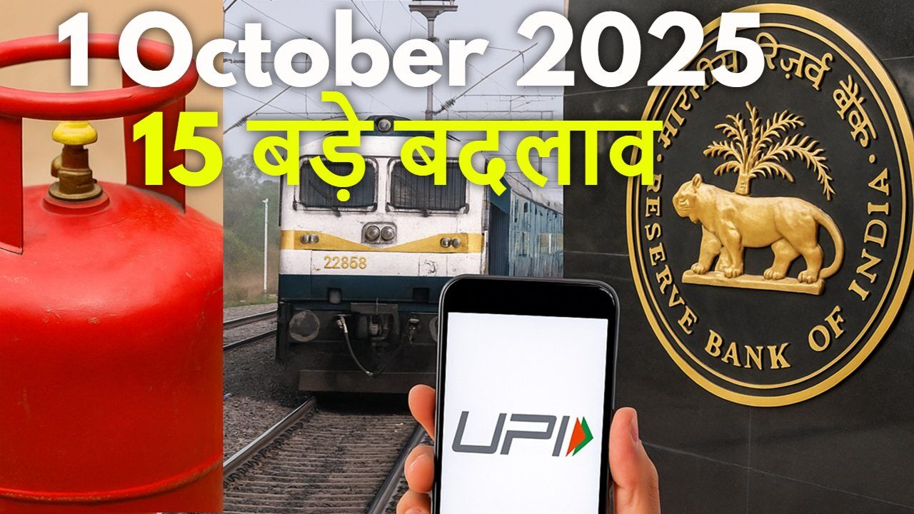 1 अक्टूबर 2025 से LPG सिलेंडर महंगा, रेलवे टिकट बुकिंग में आधार अनिवार्य, UPI कलेक्ट रिक्वेस्ट बंद समेत 15 बदलाव सीधे आम आदमी पर असर डालेंगे।