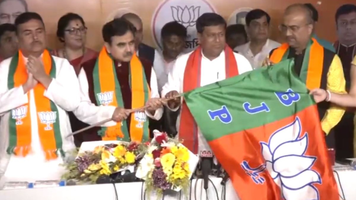 #WATCH | Kolkata, West Bengal | Former Calcutta High Court judge Justice Abhijit Gangopadhyay joins the BJP in the presence of state party chief Sukanta Majumdar, LoP Suvendu Adhikari and others. pic.twitter.com/hOPGX9p33j