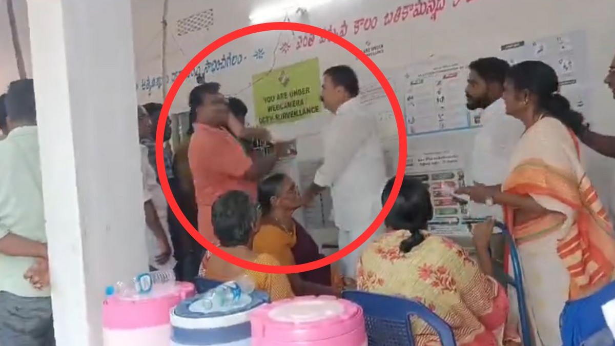 यह पूरा मामला गुंटूर जिले के एक मतदान केंद्र का है। वीडियो में देखा जा सकता है कि तेनाली के वाईएसआर कांग्रेस पार्टी के विधायक ए शिवकुमार एक मतदाता के पास पहुंचे। शिवकुमार मतदाता के चेहरे पर थप्पड़ मारते हुए नजर आए। मतदाता इस प्रहार का जवाब देता है। यह देख विधायक के सहयोगी मतदाता पर टूट पड़ते हैं।