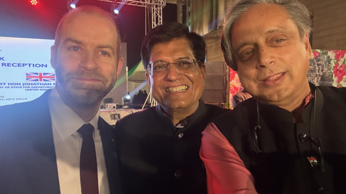 शशि थरूर ने एक्स (पूर्व में ट्विटर) पर यह तस्वीर साझा करते हुए लिखा, "ब्रिटेन के व्यापार मंत्री जोनाथन रेनॉल्ड्स और उनके भारतीय समकक्ष पीयूष गोयल के साथ बातचीत करना अच्छा रहा। लंबे समय से रुकी एफटीए वार्ता फिर से शुरू हो रही है, जो स्वागत योग्य है।"