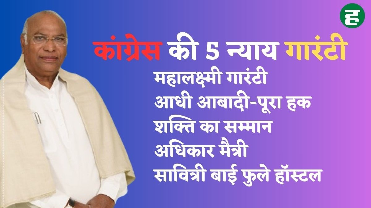 Congress Nari Nyay Guarantee for Women: लोकसभा चुनाव से पहले महिला मतदाताओं को लुभाने के लिए कांग्रेस अध्यक्ष खड़गे ने बुधवार को नारी न्याय गारंटी की घोषणा की। जिसके तहत कांग्रेस देश की महिलाओं के लिए एक नया एजेंडा तय करने जा रही है। इसमें कांग्रेस ने गरीब परिवारों की महिलाओं को हर साल 1 लाख की मदद देने का वादा किया है। नारी न्याय गारंटी के तहत कांग्रेस ने पांच प्रमुख घोषणाओं की रूपरेखा तैयार की है। जिसमें महालक्ष्मी, आधी आबादी पूरा हक, शक्ति का सम्मान, अधिकार मैत्री और सावित्रीबाई फुले छात्रावास शामिल है।