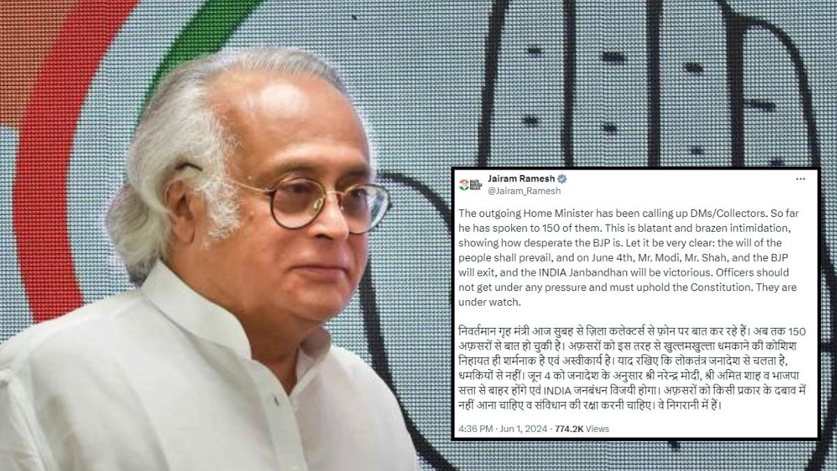 चुनाव आयोग ने जयराम रमेश से तथ्यात्मक जानकारी और विवरण मांगा है, जिस पोस्ट में उन्होंने आरोप लगाया था कि गृह मंत्री ने 4 जून को होने वाली मतगणना से कुछ दिन पहले 150 डीएम को फोन किए थे। आगे की आवश्यक कार्रवाई के लिए चुनाव आयोग ने 2 जून की शाम तक उनका जवाब मांगा है।