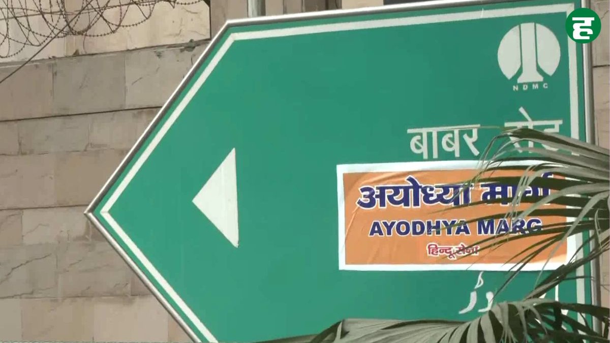 दिल्ली में बाबर रोड का नाम अयोध्या मार्ग रखा: हिंदू सेना अध्यक्ष बोले- बाबरी नहीं रही तो इसका क्या काम?, NDMC ने स्टीकर हटाया
