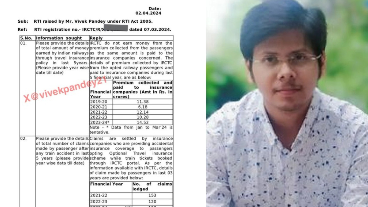RTI से मिले आंकड़ों के अनुसार, IRCTC यात्रियों से 0.45 रुपए प्रति टिकट ट्रैवल इंश्योरेंस के नाम पर वसूलता है। पिछले 5 वर्षों में बीमा कंपनियों को कुल 54.36 करोड़ रुपए का प्रीमियम दिया गया, लेकिन यात्रियों को सिर्फ 7.83 करोड़ रुपए का मुआवजा दिया गया।