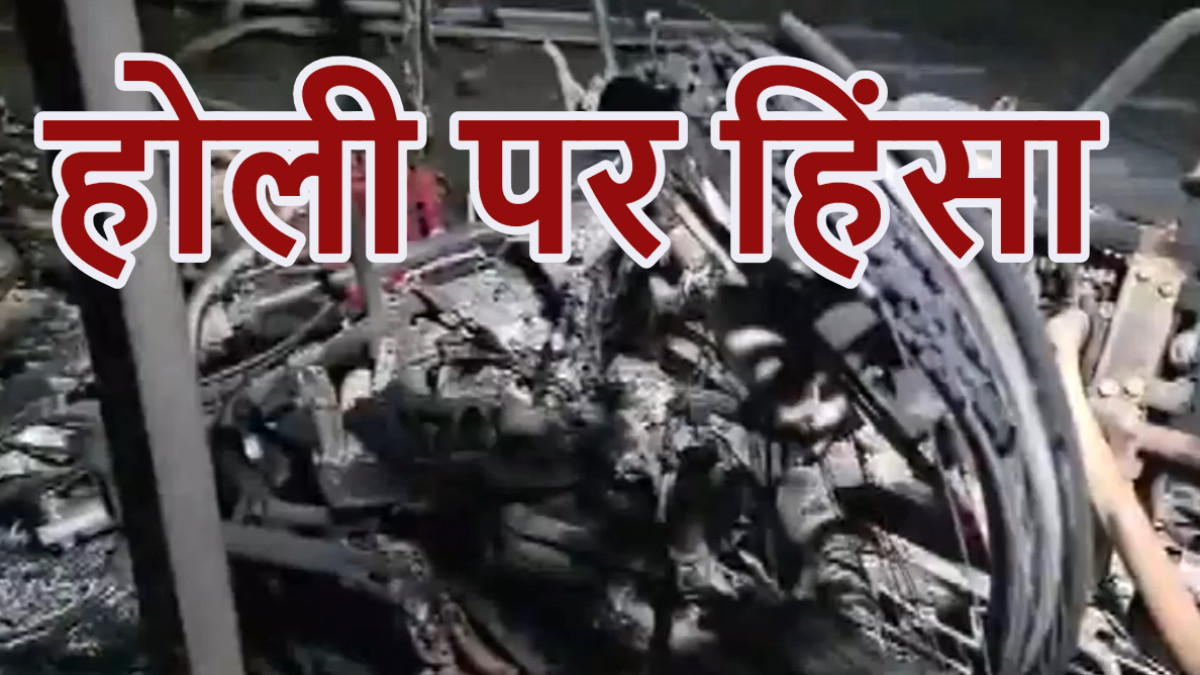 #WATCH | Jharkhand: Vehicles torched after a scuffle broke out between two communities during Holi celebration in the Ghorthamba area (14/03) pic.twitter.com/Ao1Sn2WBGh