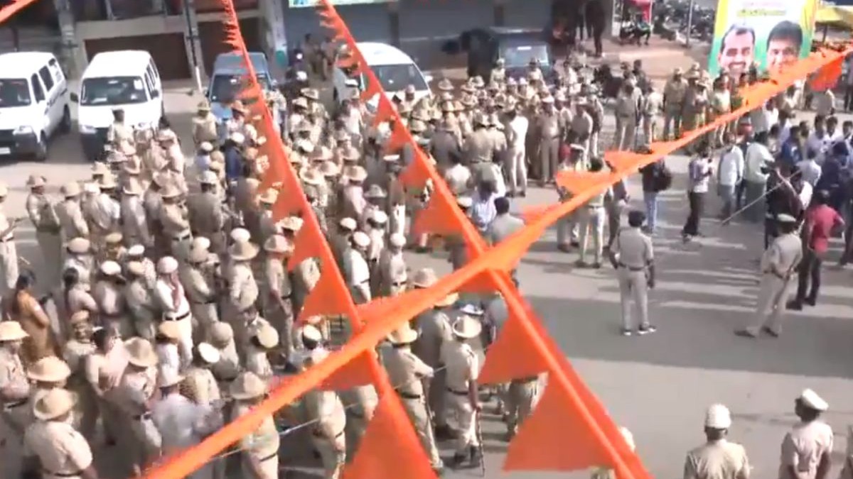 #WATCH | Karnataka Police detain BJP workers protesting in Bengaluru over the Mandya flag issue.