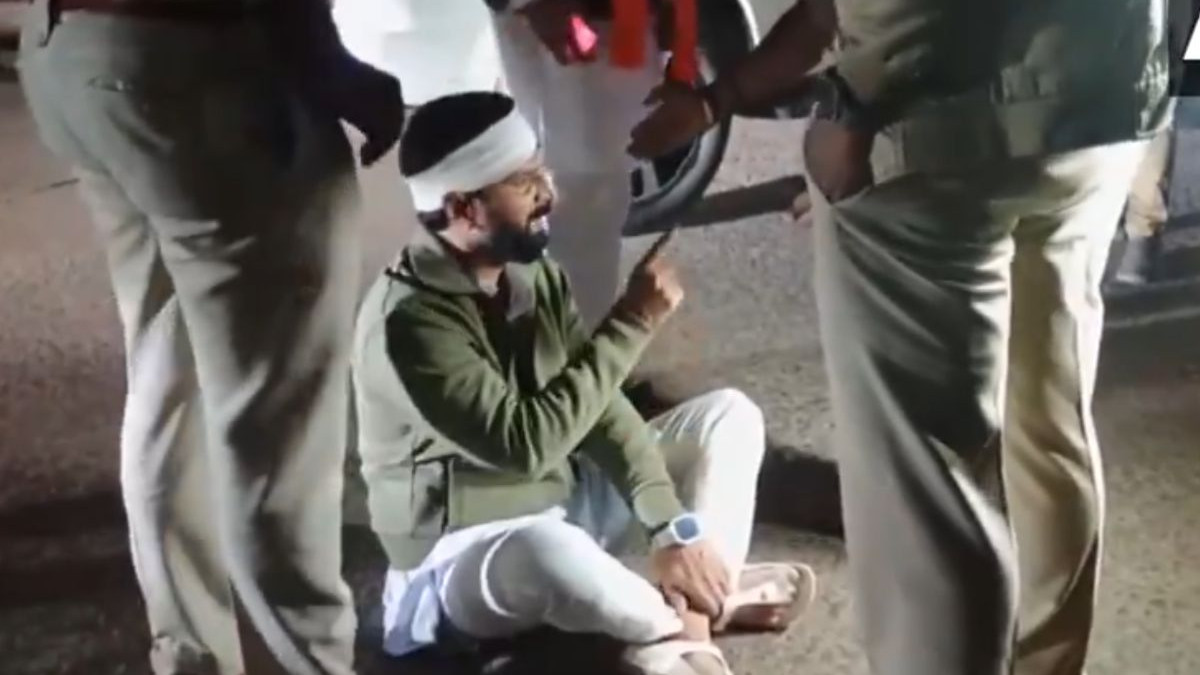 #WATCH | Karnataka: BJP leader CT Ravi sat on the road to protest against the state police as he was brought to Ramdurg taluk in Belgavi district, early morning at 3 am.